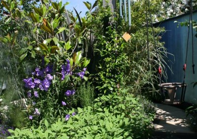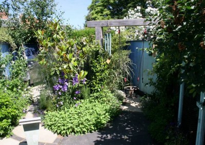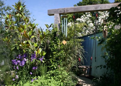 A small town garden for all the family, utilizing  every corner and many different levels.